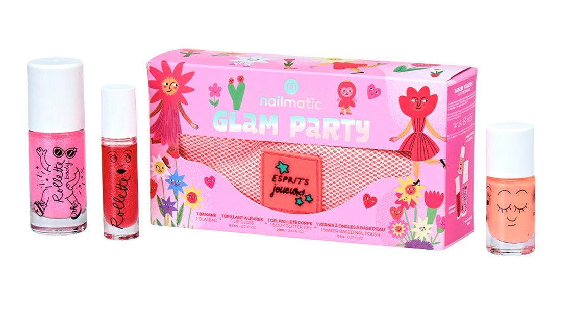 Le Coffret Glam Party contient tout ce qu’il faut pour une première approche de la beauté, ludique et responsable. Entre le vernis à l’eau corail néon, le brillant à lèvres fraise, le gel corps pailleté framboise et la banane scintillante, les enfants s’amusent à inventer leurs looks tout en douceur. Des formules douces, des textures brillantes et un univers coloré : tout pour faire du moment beauté un jeu plein de bonne humeur et de créativité !
