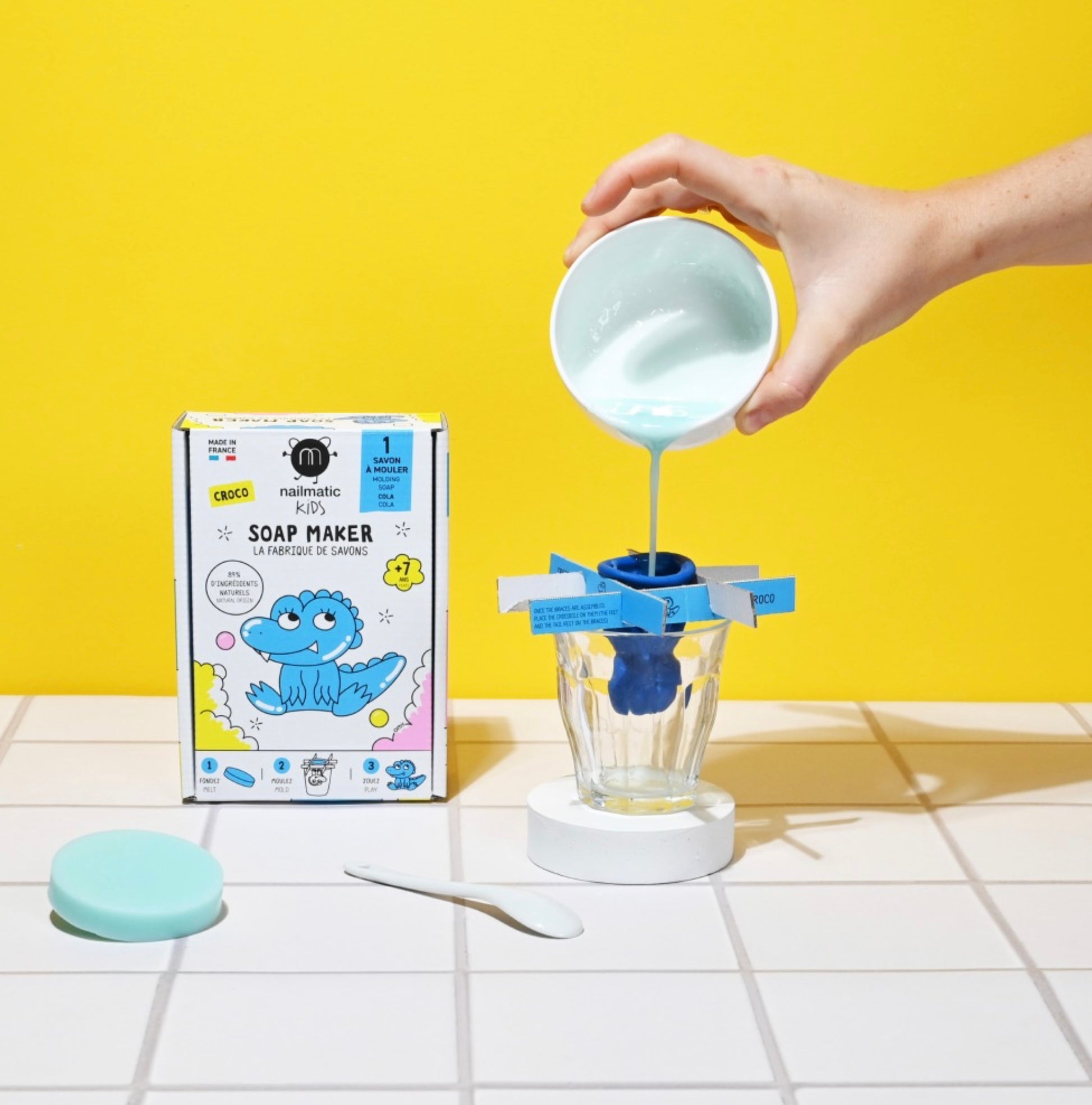 Avec la fabrique de savons nailmatic kids, les petits savonniers vont pouvoir s'éclater et créer 1 figurine en savon. On fond, on moule et hop on démoule son crocodile pour jouer dans la salle de bain ! Spécialement formulés pour les enfants, les savons nailmatic kids sont enrichis en glycérine reconnue pour ses propriétés hydratantes. Une activité pour réaliser une adorable figurine en savon, loin des écrans et des consoles de jeux.