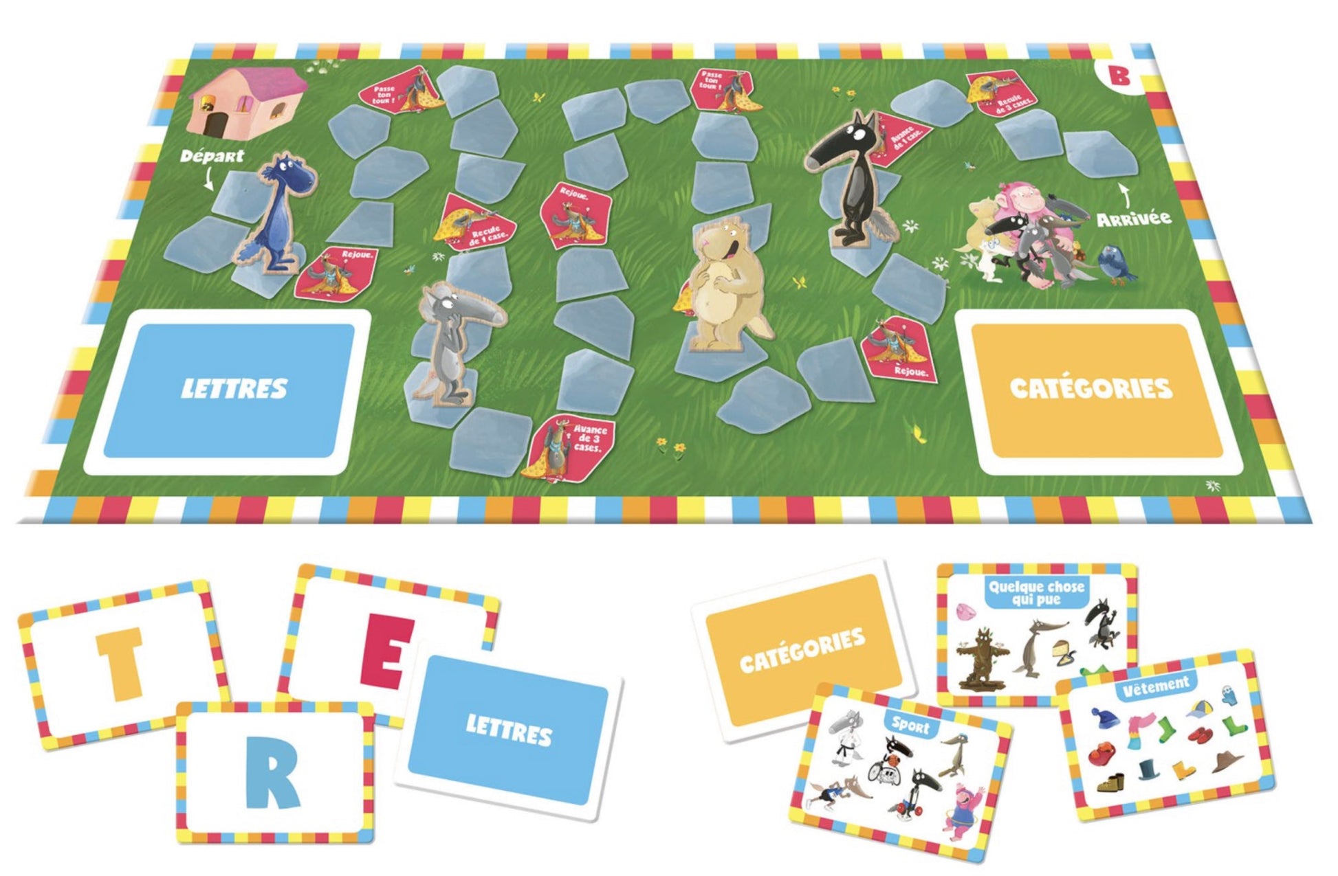 Grâce au plateau recto/verso, les enfants lecteurs ou non lecteurs peuvent jouer ! EN incarnant Loup et ses amis, les joueurs vont s'affronter pour avancer le plus vite possible sur le plateau.