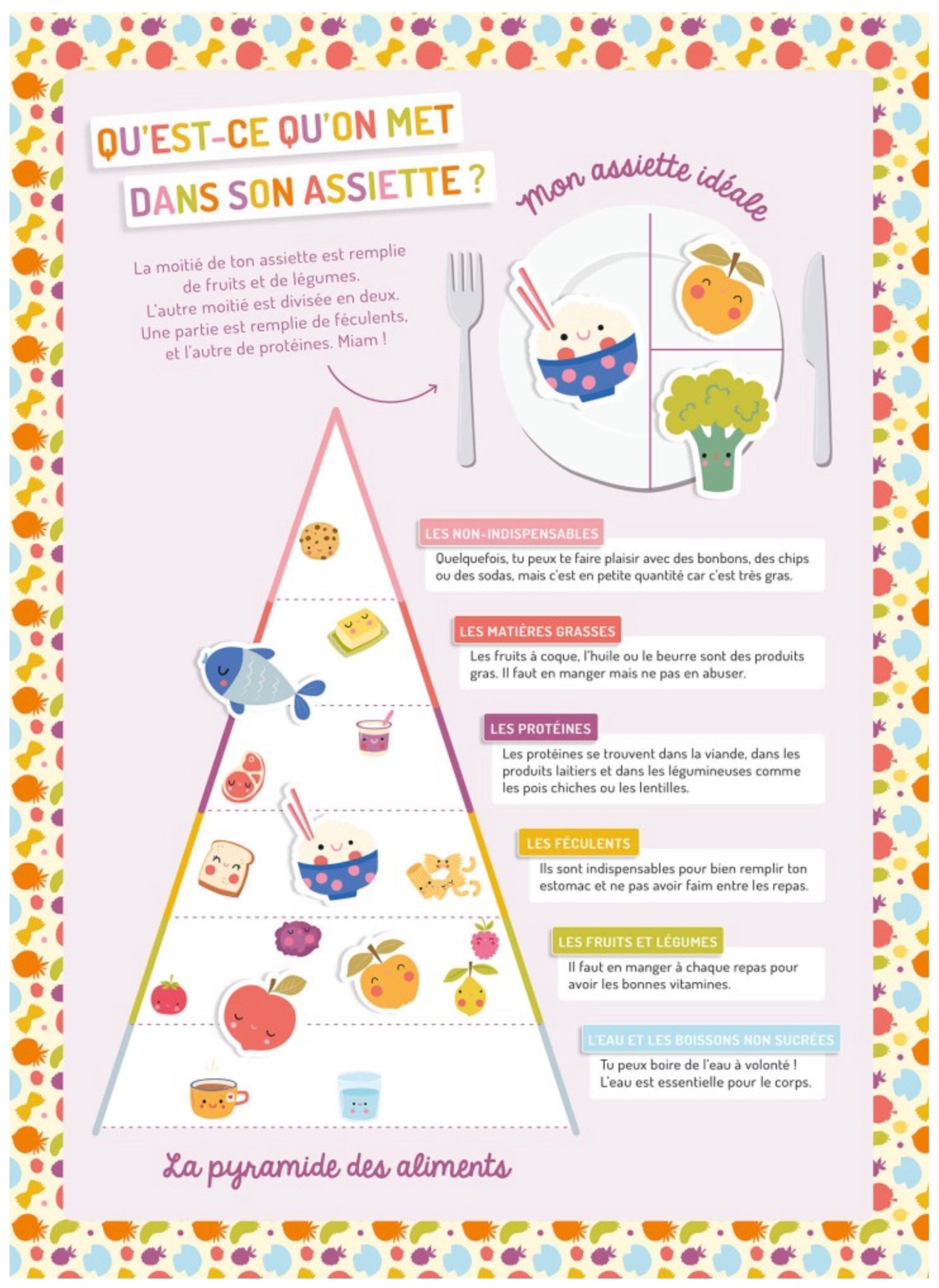 Il prévoit aussi un poster pour découvrir la pyramide alimentaire, pour une première découverte ludique (et familiale) des bienfaits de la diversité alimentaire.