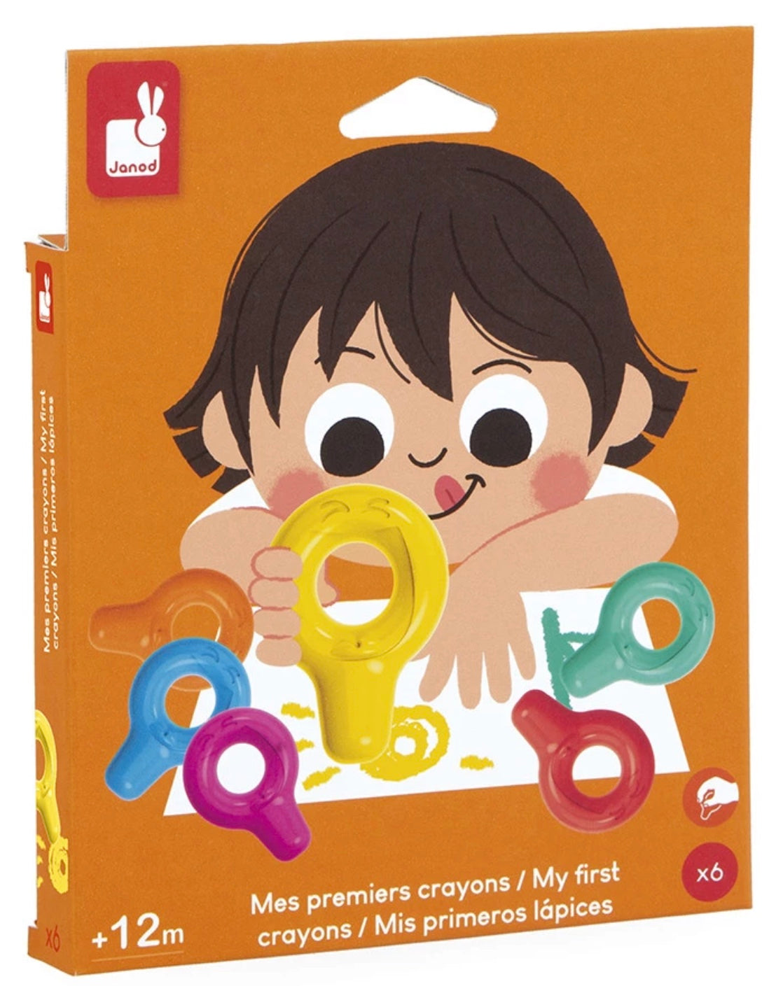 Les premiers crayons des petits ! Avec ce pack de 6 crayons de cire, les petits découvrent les couleurs dès l’âge de 12 mois. Ce set est spécialement conçu pour les petites mains, grâce à la forme confortable à prendre en main des crayons. Avec ses crayons de cire, bébé s’initie au dessin en toute simplicité. Du jaune, du rouge, du vert, du violet, du bleu et de l’orange : tout pour réaliser ses premiers dessins ! Trop rigolo, différentes émotions sont représentées sur chaque crayon. On adore la boite super pratique et réutilisable, pour ranger les crayons de cire après chaque séance de coloriage. En réalisant ses premiers dessins, bébé commence à développer sa créativité et travaille sa motricité fine : un chouette moyen d’aborder le coloriage en prévision de ses prochaines réalisations. Que la découverte commence ! Ce set de 6 crayons de cire pour bébé fait partie de notre gamme « Colo », une collection complète d’articles de coloriage, pour des moments créatifs hauts en couleur dès le plus jeune âge.
