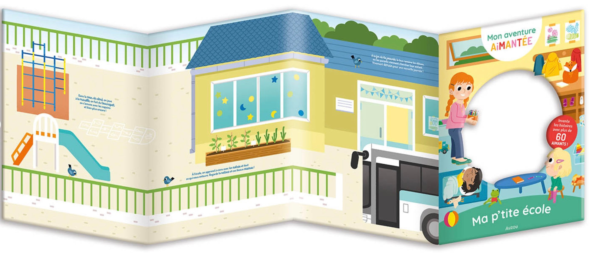 Dans cette nouveauté, on découvre l’univers de l'école – la classe, le couloir, la cantine, la cour de récrée, le dortoir et le portail !