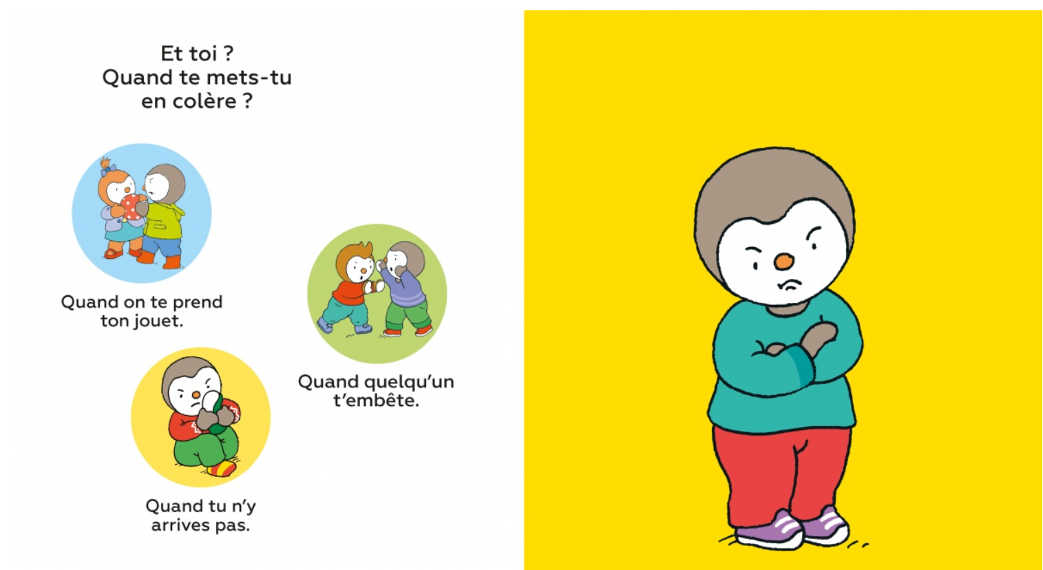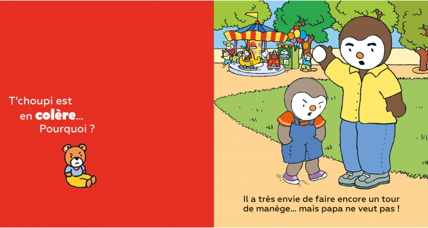 Chaque page illustre une émotion de T'choupi et invite à s'interroger.