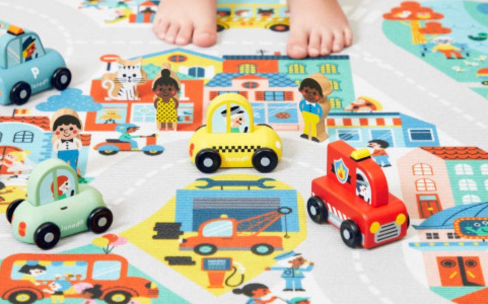 « Besoin d’une course ? » Cette petite voiture en bois convient aux enfants, dès l’âge de 12 mois. Dans son coloris jaune caractéristique, voilà un taxi facilement reconnaissable, prêt à vous déposer partout en ville ! Sa forme a été pensée spécialement pour une prise en main optimale pour les petits, qui peuvent facilement le tenir par le haut pour le faire rouler. Les véhicules sont parfaits pour inventer de nombreuses histoires et développer son imagination ! Les bébés s’amusent d’abord à les faire rouler, puis les plus grands se racontent toutes sortes d’aventures et développent leur vocabulaire et leur créativité. Cette petite voiture Janod est issue de notre collection Cross Roads : une série de tapis de jeu avec circuits, encore plus ludiques quand ils sont complétés par nos sets de cubes et nos petits véhicules en bois. La voiture de taxi convient particulièrement au tapis de jeu Ville, mais s’associe tout aussi bien avec d’autres tapis de la gamme. Elle est composée de bois issu de forêts gérées durablement, certifié FSC™. « Profitez de la course pour admirer l’architecture ! »